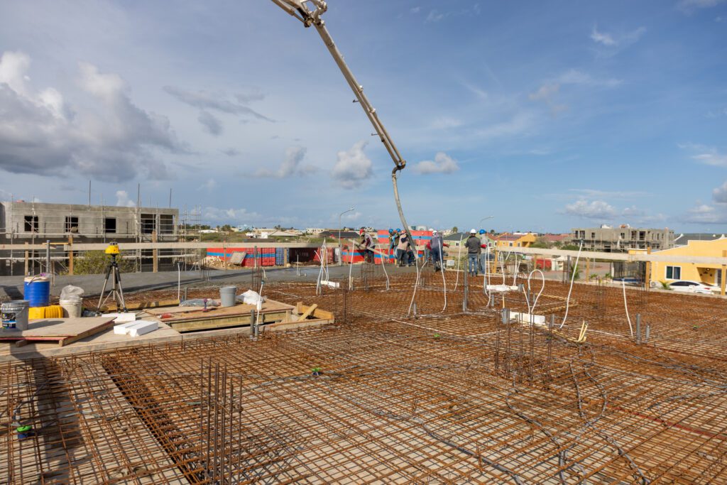 De bouw van de 48 appartementen voor Fundashon Cas Bonairiano (FCB) op Hato verloopt voorspoedig. Inmiddels zijn we bij de eerste twee gebouwen volop bezig met de afbouwfase. Het pleisterwerk is hier afgerond en in beide gebouwen zijn we gestart met het tegelwerk en zeer binnenkort beginnen we met het plaatsen van de buitenkozijnen. Kort daarna volgen het sanitair en de binnenkozijnen, waarmee deze gebouwen steeds verder richting oplevering gaan.